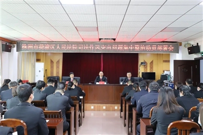 本报讯(通讯员 喻志强 张雅涛)为巩固深化政法队伍教育整顿成果,推进司法为民、公正司法,全面改进司法作风。4月2日,株洲市荷塘区法院召开司法作风突出问题集中整治部署会议。会议由荷塘区法院党组副书记、副院长文环宇主持,荷塘区法院党组书记、院长徐达江主持讲话,全院干警参加会议。