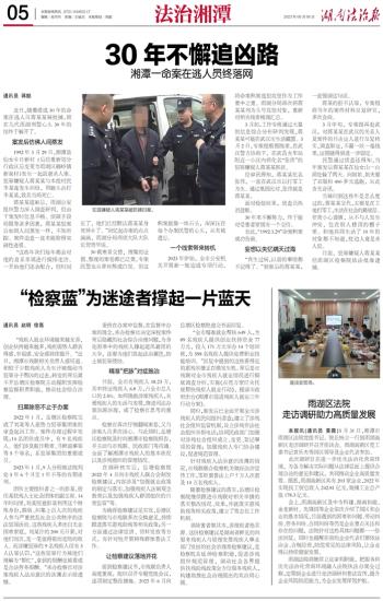“这些年我们每年都会对他的直系亲属进行摸排走访。一开始他们还会配合,但时间长了,他们已经默认蒋某某身死异乡了。”回忆起办案的点点滴滴,雨湖分局刑侦大队大队长贺勇华说。