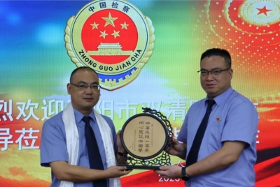 会后,双清区检察院负责人将刻有“中华民族一家亲,同心共筑中国梦”的非物质文化遗产宝庆竹刻摆件赠予贡嘎县检察院。