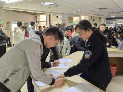 据怀化市公安局人口与出入境管理支队户政大队大队长邱隽介绍,为全力以赴应对节后办证小高峰,全市公安机关各级人口与出入境办证窗口全部提前或准时开放。上班第1天,全体民警迅速进入工作状态,以饱满的热情、认真的态度、有效的措施服务好每一位群众。