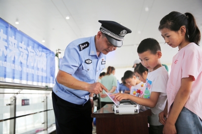 “各位旅客大家好!在国际禁毒日来临之际,我们向大家宣传禁毒知识。”6月25日,怀化铁路公安处怀化火车站派出所民警,在候车室向旅客开展禁毒宣传。当天,派出所联合鹤城区禁毒协会、怀化车站等单位,充分运用宣传展板、毒品模型和宣传资料,向广大候车旅客宣传禁毒知识。图为民警通过毒品模型告诉旅客哪些是毒品、毒品的分类以及毒品的危害。