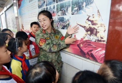 9月23日,嘉禾县钟水九年制学校,人武干部向学生宣讲国防知识。9月是全民国防教育宣传月,该县人武部组织优秀退役军人、专武干部开展“国防教育进校园”活动,通过主题班会、宣传展板、互动答题等形式,宣讲国防知识,增强学生国防观念,提升国防素养。