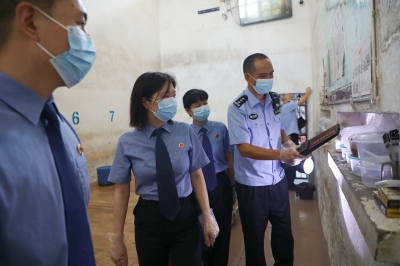 近日,宜章县检察院组织开展看守所安全防范检察活动,深入看守所监区,到各监室进行实地检察,查看监室里是否存在违禁品,了解在押人员的生活、学习与教育改造等情况。