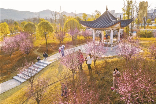 ▲2月13日,东安县聚德生态文化园,梅花竞相绽放,吸引了不少居民前来,乐享春节假期的“梅”好时光。 严洁 摄 |