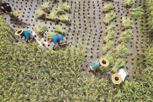 9月19日,隆回县虎形山瑶族乡崇木凼村,游客身穿花瑶服饰体验传统农耕。当天,该村开展“千村万寨心向党,载歌载舞庆丰收”活动,吸引众多游客前来体验花瑶传统农耕,乐享中秋假期。曾勇 胡权 摄影报道