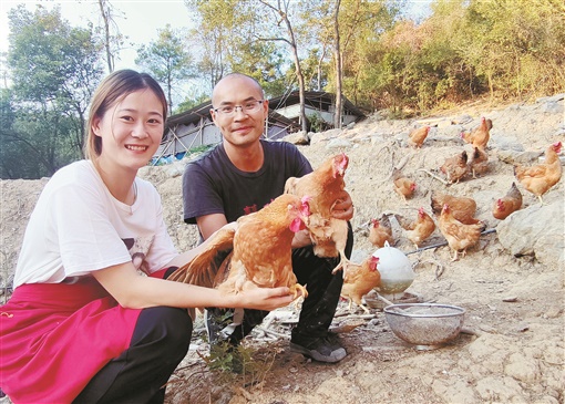 大山深处,两人一起建起400平方米的鸡舍,开拓出20余亩的放养基地,从十指不沾阳春水的城市“白领”成为躬耕养殖的“新农人”。为了照顾小鸡,每晚小鸡不睡,他俩也不睡,一会儿添食添水,一会儿用电暖气给鸡舍取暖,细心呵护鸡苗茁壮成长。