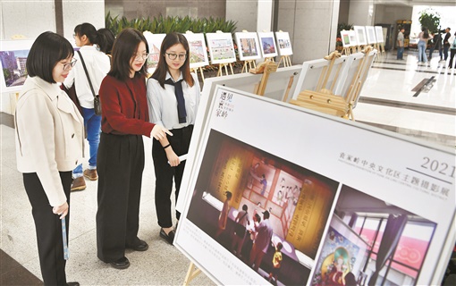 10月8日,市民在参观展览。当天,“我和我的城市·遇见袁家岭”主题摄影展在长沙市芙蓉区直机关开展,展出的60余幅摄影作品,记录、展示了袁家岭中央文化区的发展变化以及文化内涵。湖南日报·新湖南客户端首席记者 郭立亮 摄