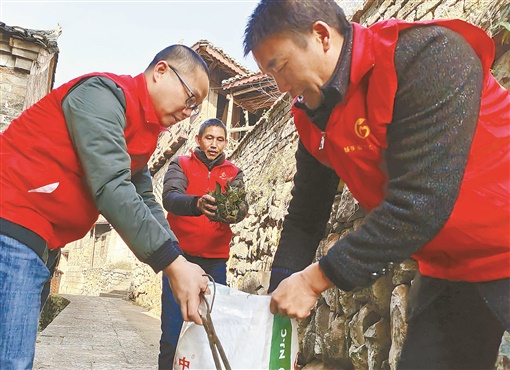 12月4日,城步苗族自治县儒林镇清溪村,义工在巷道内打扫卫生。在12月5日国际志愿者日到来之际,该县爱心义工协会组织会员来到清溪村古民居群,开展捡拾垃圾、清除杂草等活动,扮靓美丽古村。严钦龙 摄