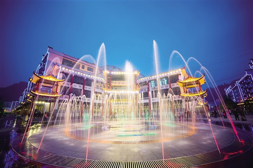 古丈茶叶街经过提质改造焕然一新,在夜幕下灯光与喷泉交相辉映。张术杰 摄