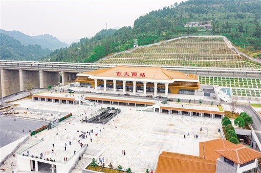 古丈西站坐落于县城西南的南山村,因其依山开挖架桥而建,建成后将呈梯田状的总体建筑布局。