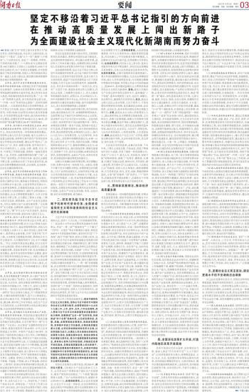 坚定不移沿着习近平总书记指引的方向前进 在推动高质量发展上闯出新路子 为全面建设社会主义现代化新湖南而努力奋斗