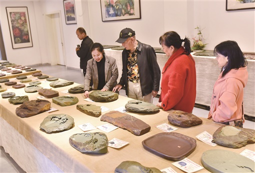 12月5日,双峰县杏子铺镇双源村的国藩溪砚展示交流中心,游客在选购溪砚。近年,该县传承发展省级非物质文化遗产溪砚制作工艺,依托水府庙水库库区旅游资源,在杏子铺镇双源、溪口等村打造制作、展示、交流、培训中心,推进文化旅游产业融合发展,助力乡村振兴。乃继辉 摄