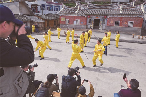 12月11日,媒体记者在厦门市同安区莲花镇淡溪村集中拍摄宋江阵表演。10日,由新华社《摄影世界》杂志社组织的“重走初心路——全国部分主流媒体聚焦‘高山村’ ”摄影采访活动,在福建省厦门市启动,国内20余家媒体的记者共同探访“高山村”的“蝶变”之路。军营村、白交祠村、西坑村、淡溪村位于厦门市同安区莲花镇,是厦门市最边远的“高山村”。35年间,“高山村”从默默无闻的偏僻穷山村逐渐成长为“百姓富、生态美”的新农村。