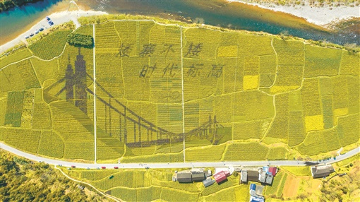 3月8日,吉首市矮寨镇大兴社区,油菜花田里绘制的巨幅“矮寨不矮 时代标高”字样引人注目。近年,当地大力发展乡村旅游,带动群众增收致富,建设生态宜居美丽乡村。湖南日报全媒体记者 辜鹏博 摄