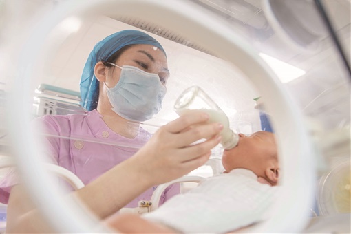 5月12日,道县人民医院新生儿科,护士在护理新生儿。当天是国际护士节,无数白衣天使在自己的岗位上,用行动践行救死扶伤、甘于奉献的崇高精神。蒋克青 柏华林 摄影报道