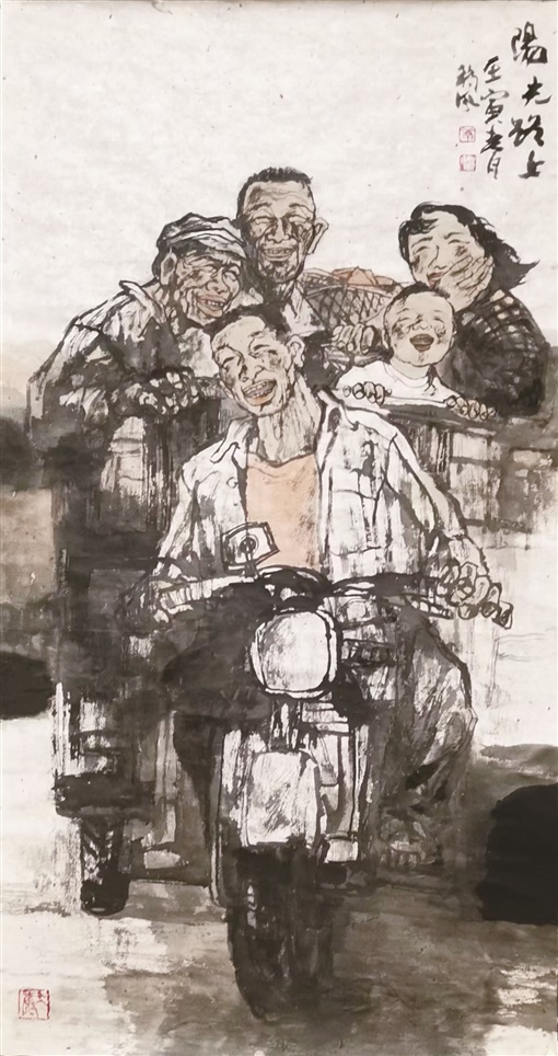 每次提笔去画煤矿工人的时候,他们那种乐观、坚韧的精神状态,粗犷率真的个性,那种面对艰苦的劳作和单一的生活所表现出的开阔心境……都会一一跃然我眼前。在漆黑的千尺井下,在低矮的采煤垱头,我也曾作为采煤工的一员和大家一起扒煤、拖矸、放顶、支架,穿着汗迹斑斑的窑衣,在煤尘飞扬的黑暗中劳作。多少年来这种真实的生活体验一直在影响我,也在驱动着我的创作欲望。煤矿工人们希望看到的是更多表现他们积极的生存状态、阳光向上的艺术作品。而这也是我几十年来绘制煤矿工人作品时最根本的创作意识。