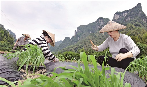 5月24日,吉首市矮寨镇夯腊村,村民在移栽玉米苗。今年来,该市高度重视粮食生产和抛荒耕地治理工作,采取创建示范样板推动,以市带乡、乡带村、村带户模式,大力发展粮食生产。