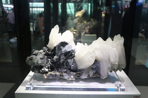 此外,展会还有郴州本土的萤石、方解石、七彩石、黄龙玉、墨石、香花石、水晶、通天玉等,以及来自世界各地的自然铜、陨石、祖母绿、海蓝宝、碧玺、古生物化石等矿物晶体及珠宝首饰、工艺品,上万种矿物宝石精品共同亮相,上演了一场矿晶盛宴。