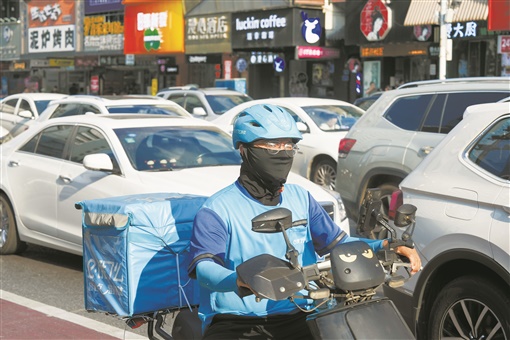7月11日,长沙市天心区解放西路,外卖小哥冒着高温送餐。湖南日报全媒体记者 辜鹏博 通讯员 刘昀亦卓 摄影报道
