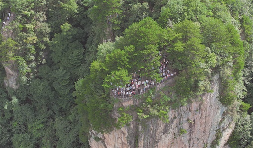 图③ 8月5日,张家界国家森林公园天子山。酷暑季节,该景区清爽宜人,中外游客纷至沓来。吴勇兵 摄