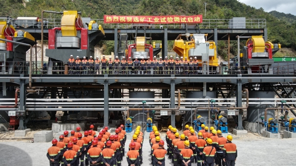 湖南紫金锂业有限公司利用现有证照,在最短时间内建成一条30万吨/年选矿工业试验生产线,目前正积极规划推进500万吨/年露采项目建设。图为选矿工业试验调试启动的场景。