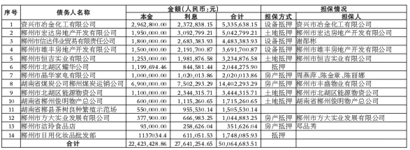 根据湖南省资产管理有限公司与本公司签订的债权转让合同,湖南省资产管理有限公司已将其对下列债务人和担保人的债权及担保权利依法转让给本公司,作为郴州市芳园博大电器有限责任公司等23户债权的受让人,现就部分债权特此公告要求如下表中的债务人、担保人及债务人、担保人的承继人从公告之日起立即向深圳市华资银资产管理有限公司履行还款义务或承担相应的担保责任。(注:1、本公告资产清单列明截至2016年6月30日的贷款本息余额,后期本金余额、利息、罚息、复利按照合同约定,债务人和担保人应归还给深圳市华资银资产管理有限公司的款项按借款合同、担保合同、法院判决及中国人民银行有关规定另行计算到归还日止。涉及币种注明外均为人民币,单位:元。2、若债权人、担保人因各种原因发生了更名改制、歇业、吊销营业执照、破产或丧失民事主体资格等情形,请相关承债主体、清算主体代为履行义务或承担清算责任)。特此公告