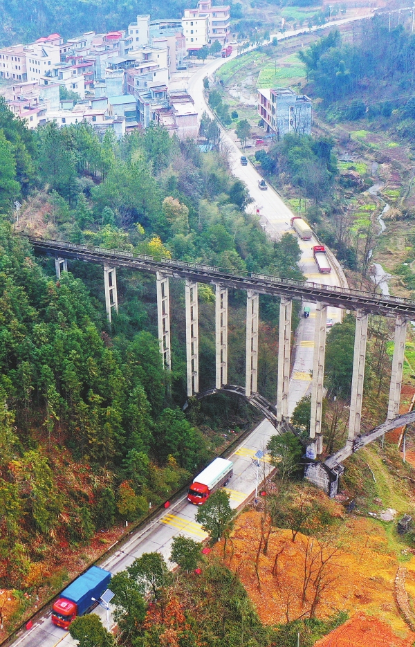 1月27日,嘉禾县晋屏镇帅家村,车辆行驶在嘉宁公路上,畅通无阻。近年,该县持续加快交通基础设施建设,大力实施生态路、旅游路、产业路等富民工程,形成了立体交通网络,有效助推了当地经济社会高质量发展。黄春涛 摄(湖南图片库)