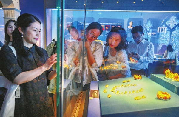 5月31日晚,市民近距离观赏展出的珍宝。当天,“繁星绮梦——16-20世纪典藏珍品艺术展”在长沙博物馆开幕。约300件传世珍宝向人们展示500余年来珠宝首饰制作工艺与艺术风潮的发展变化,讲述中西方文明互鉴的璀璨故事。