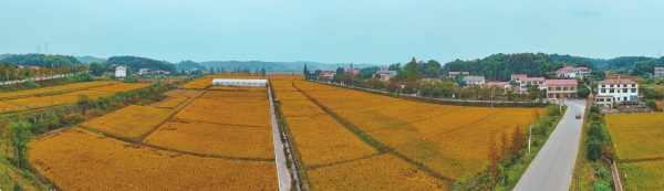 10月26日,长沙县隆平稻作公园,丰收在望的稻田如金色绸缎铺满大地,构成了一幅壮丽的秋日画卷。湖南日报全媒体记者 童臻熙 摄