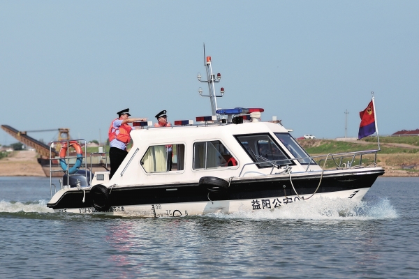 10月10日,沅江市森林公安局民警在资江水域巡河。李文 摄(湖南图片库)