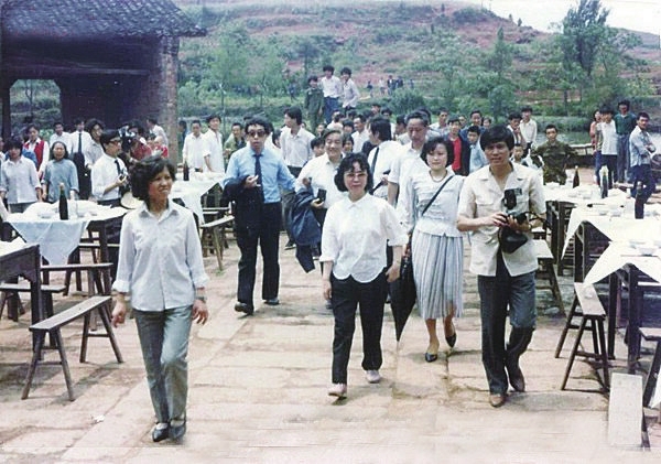 1989年5月,在离别祖国大陆40年后,偕丈夫平鑫涛回乡省亲祭祖,受到乡亲们的热烈欢迎。