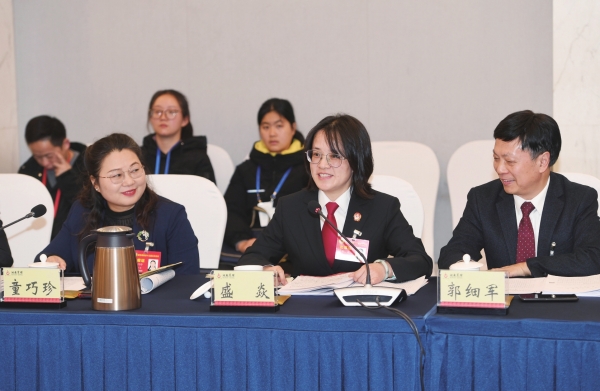1月16日下午,盛焱委员(前排中)就溯源预防未成年人违法犯罪建言。
