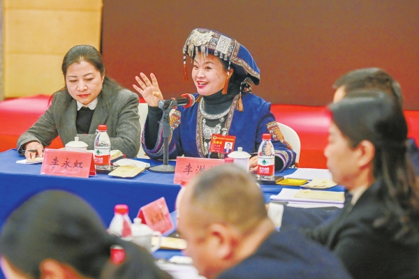 1月16日下午,李洪梅委员(左二)就优化营商环境等方面积极建言献策。湖南日报全媒体记者 郭立亮 摄