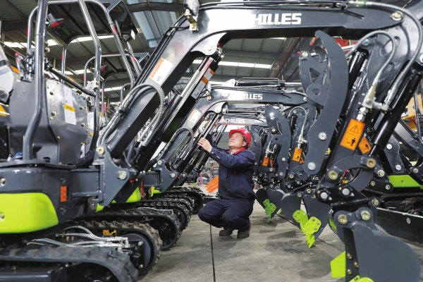 2月24日,新田县产业开发区湖南德力重工有限公司生产车间,工人在组装微型挖掘机。湖南德力重工有限公司是国家高新技术企业、湖南省专精特新小巨人企业,具备年产微型挖掘机2000台的生产制造能力。春节后,该企业的海外订单排到4月份,企业在抓好安全生产的前提下,开足马力赶制订单产品,以确保如期交付。