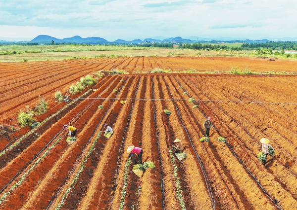 6月23日,道县祥霖铺镇秀水洞村,农民在移栽红薯苗。近年来,该县利用山地资源优势,采取“合作社+基地+农户”模式,引导农民发展红薯种植,以特色产业发展带动农民增收致富。