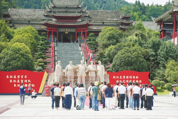 6月29日,游客在通道转兵纪念馆参观。“七一”前夕,通道侗族自治县红色旅游景点热度攀升,游客纷纷走进通道转兵纪念馆、恭城书院等地,学习革命历史,在沉浸式体验中传承红色基因,汲取奋进力量。