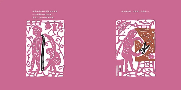 《妈妈的剪影》是给孩子看的图画书。但很多家长翻开它,给孩子读的时候,会惊奇地发现,这讲的也是他们自己的童年。扉页那张上下对称的剪纸就特别神奇:鱼塘边,小姑娘用镰刀收割鱼草,水中映着她的倒影。只这一眼,就把许多大人拉回了儿时的田埂。那姑娘大大的眼睛,质朴的微笑,像一把钥匙,瞬间打开了记忆的闸门。