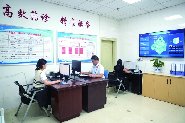 由平江县第一人民医院牵头组建的医共体,通过资源整合与体系重构,疏浚了县、乡、村三级水渠,并按片区打造了4个枢纽医院、成立了14个管理中心,实现了医共体内成员单位的有效互通。