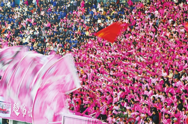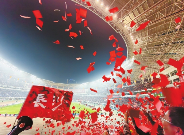 12月20日晚,长沙贺龙体育场,湘超半决赛,球迷在加油呐喊。 |