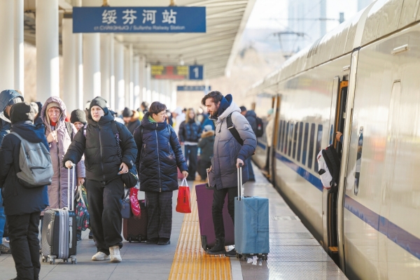 中俄双向免签政策实施带动了两国人文和旅游交流。1月1日至7日,中俄重要陆路口岸城市黑龙江省绥芬河市出入境外籍游客人数达到10007人,同比增长83%。图为8日,在绥芬河火车站,游客下车准备出站。