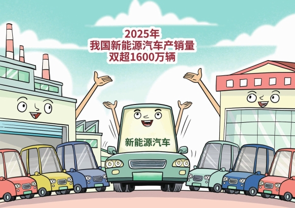中国汽车工业协会14日发布数据显示:2025年,我国新能源汽车产销量均超1600万辆,新能源汽车国内新车销量占比突破50%。