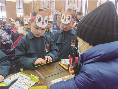 戴着小鹿头饰、穿着整齐的校服,1月7日上午,常德市武陵区第一小学一年级的“小鹿”们早早开始了“语文王国”“数学城堡”的期末大闯关。副校长周虹向记者介绍,“学生非常喜欢这样的测评方式,让孩子们在‘玩中学’,让‘双减’政策有温度地落实。”