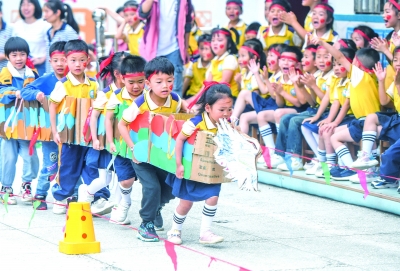 6月10日是端午节,为了让孩子们更好地了解端午节的文化内涵和传统民俗魅力,道县教育局示范幼儿园举行“龙舟竞渡 喜迎端午”趣味比赛。图为幼儿在参加趣味“龙舟赛”。 蒋克青 摄影报道