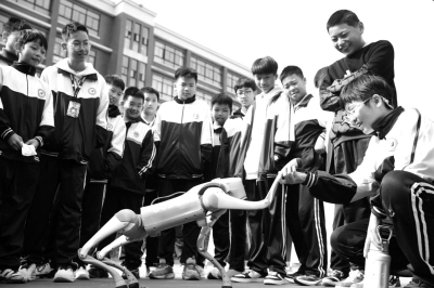 近日,2024年永州市“潇湘科普行”之科普进校园活动暨道县“百名院士进校园 万名科技工作者上讲台”系列科普活动走进道县各中小学校,为学生们带来“零距离”的科技互动体验。图为学生与机器狗热情互动。