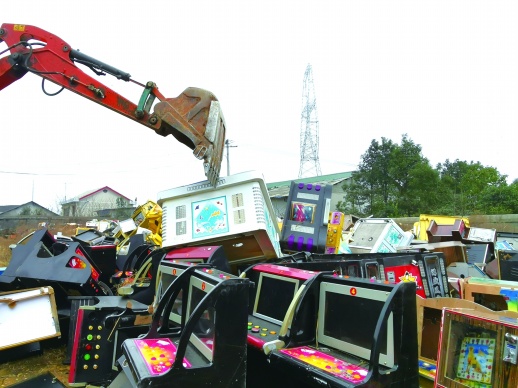 本报1月21日讯 今日上午,在长沙市公安局治安支队樊塘基地,长沙警方对收缴的赌博机具进行集中销毁。现场还通报了破获的一起开设赌场案,抓获涉案人员12人。
