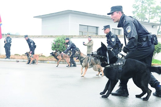 “坐”、“立”、“卧”、“握手”,每当长沙特警支队训导员发出指令,10只警犬便应声乖乖地做出相应的动作。训练中设置了“犯人”逃脱的情景,由演员扮演的“罪犯”正在逃跑,训导员命令一只警犬前往追捕,警犬使出“扑咬技术”,数秒内便追上“逃犯”,并狠狠地追咬着“逃犯”戴着防护手套的手,直至训导员捕获“罪犯”并发出“放手”的指令才松开,完美地诠释了警犬的“尽忠职守”。