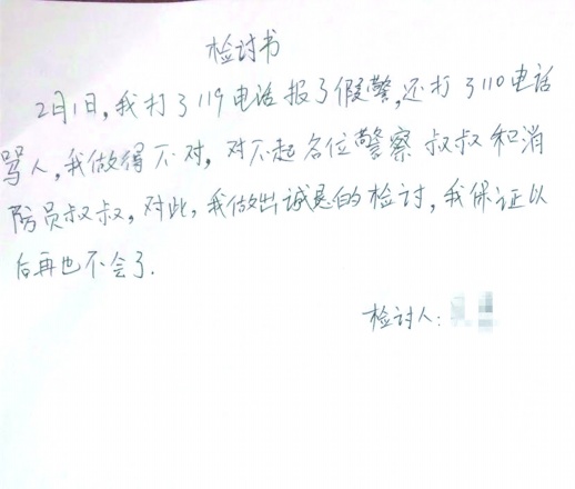 情况紧急,消防员立即联系民警调查。经核实没有起火,报警人是一名小学五年级学生吴某,他和同学打赌好玩,所以报了假警。吴某承认错误并写下保证书,吴某爸爸也进行检讨,并保证以后加强管教。考虑到吴某才10岁,是未成年人,最终消防员和民警对其进行了批评教育,同时对家长进行了警告。