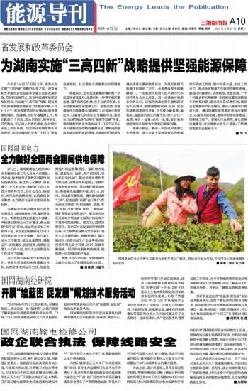 为湖南实施“三高四新”战略提供坚强能源保障