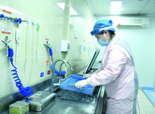 “消毒供应中心的面积1500平方米,平均每月处理的手术器械包超过3000个,还有手术布类及敷料包4000多个、病房包5000多个、奶具3600多件,加上其他呼吸机管路、复苏囊等,每月需要处理各类器械、物品包总数达16600个,器械总件数超过80000件。”医院消毒供应中心护士长杨娟介绍。