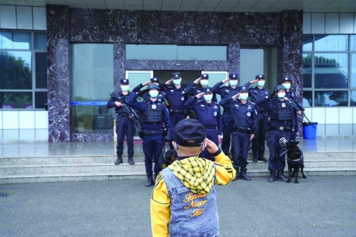 下图:活动结束后,小宇向全体特警敬礼表示感谢。通讯员 供图
